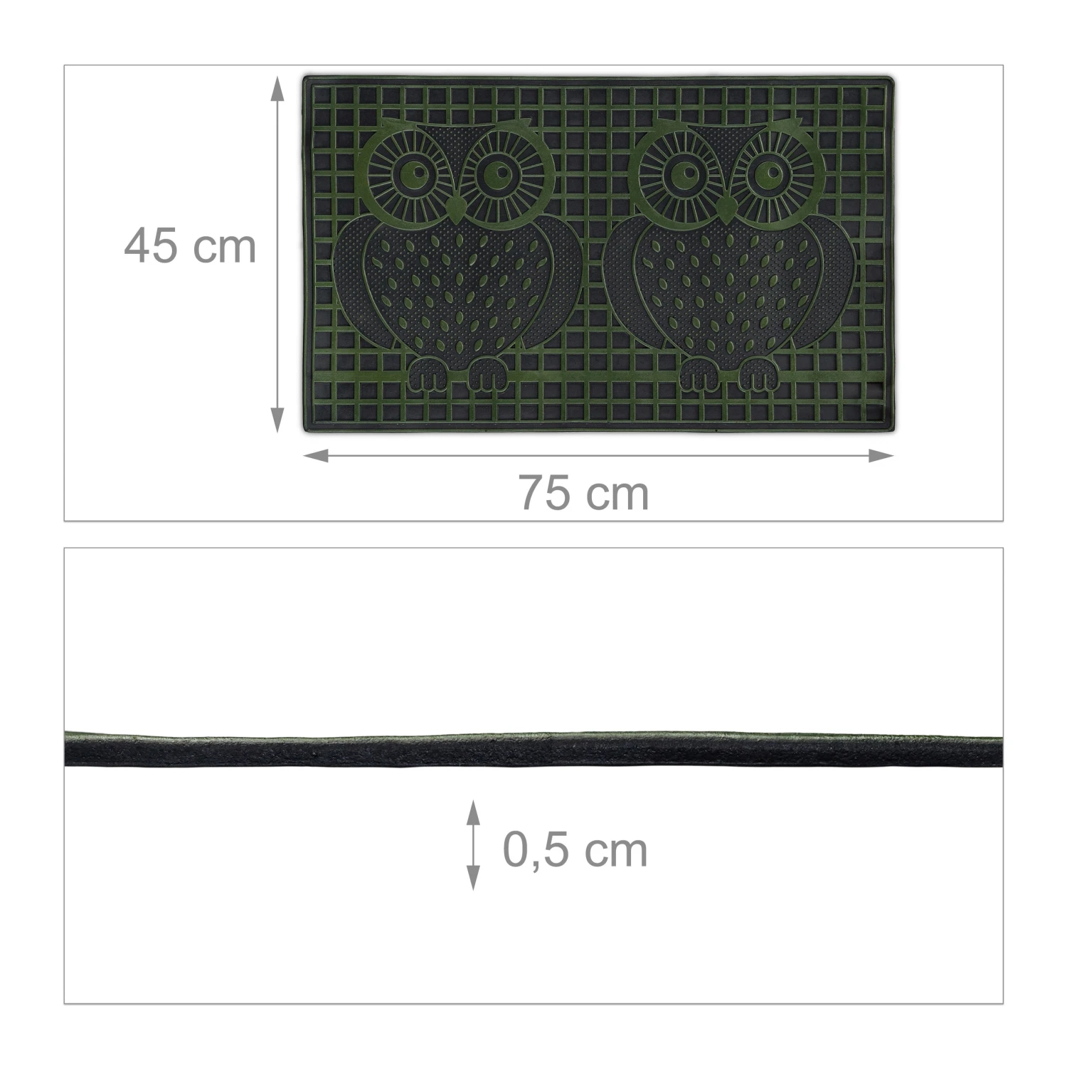 Die Gummifußmatte mit niedlichem Eulen-Motiv schenkt Deinen Gästen ein Lächeln und erinnert zugleich stets daran, die Schuhe abzutreten. Die Türmatte mit Relief macht das Abstreifen dreckiger Schuhe zum Kinderspiel und ist mit Wasser einfach zu reinigen. Ob im Hausflur oder auf dem Balkon, der praktische Fußabtreter aus strapazierfähigem Gummi kann überall zum Einsatz kommen und bleibt dank seiner rutschfesten Eigenschaft an seinem angestammten Platz.
