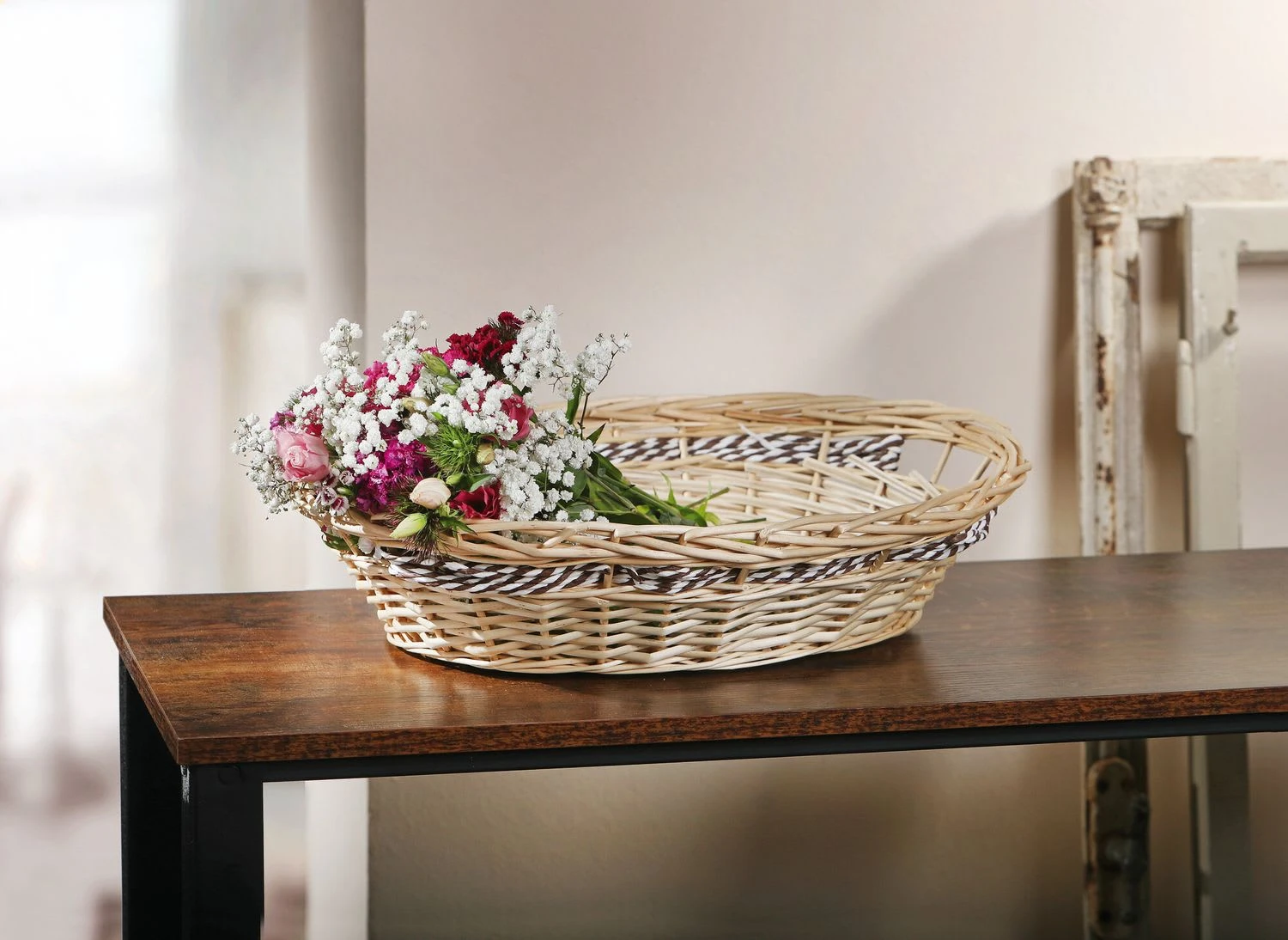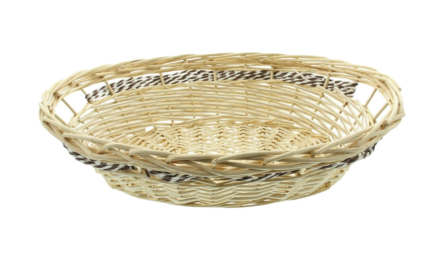 weiße Spalt- und Vollweide, verziert mit weiß/blauer Papierschnur, seitlich eingearbeitete Griffe