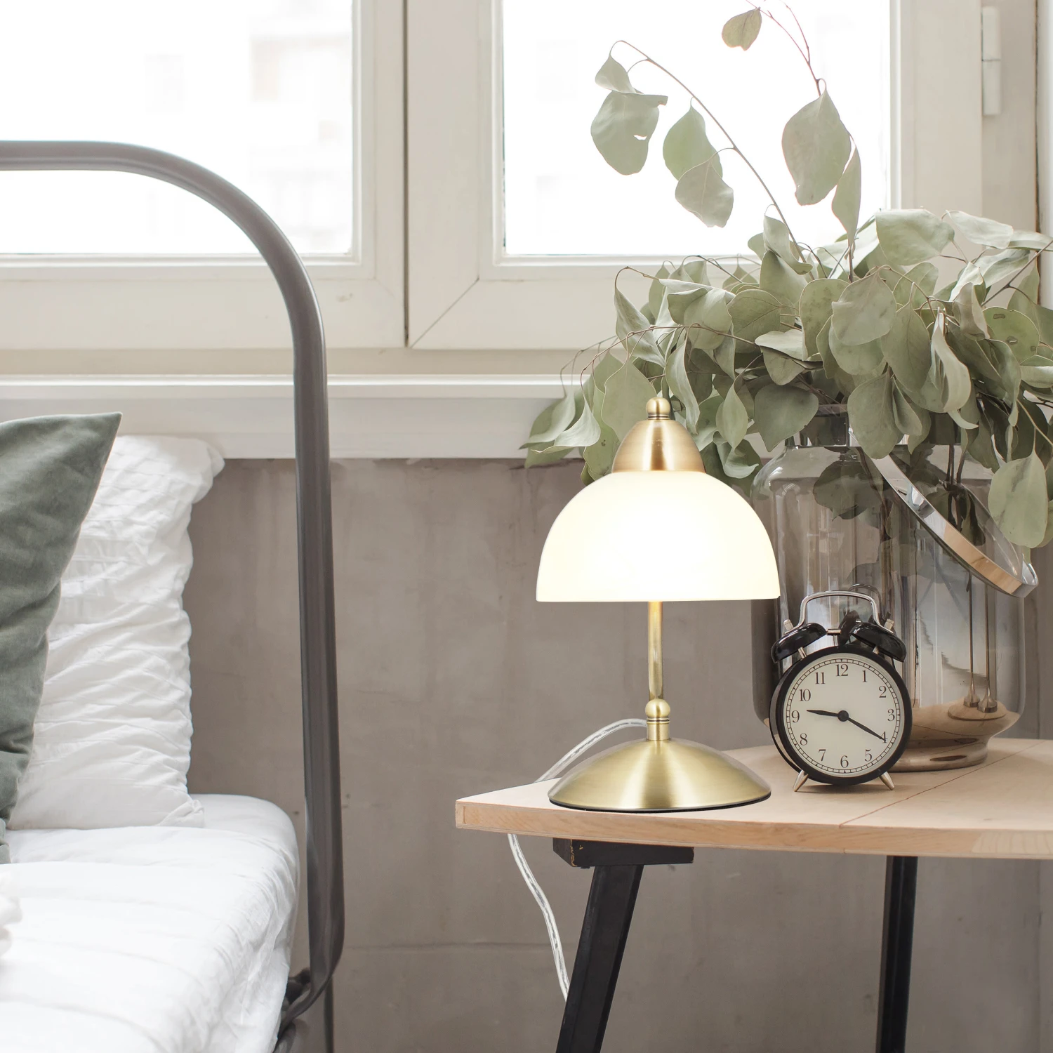 Diese Tischlampe aus Metall und Weißglas eignet sich für viele Zwecke in Ihrem Zuhause. Als Beleuchtung neben dem Bett ist sie praktisch zum Lesen, im Wohnzimmer spendet sie charmantes Licht oder sie hilft am Schreibtisch beim Arbeiten. Besonders praktisch ist die Touchfunktion, durch die ein langes Suchen nach dem Schalter ausbleibt: Mit einem sanften Tippen lässt sich die Lampe an- und ausschalten sowie die Helligkeit der Leuchte dimmen.