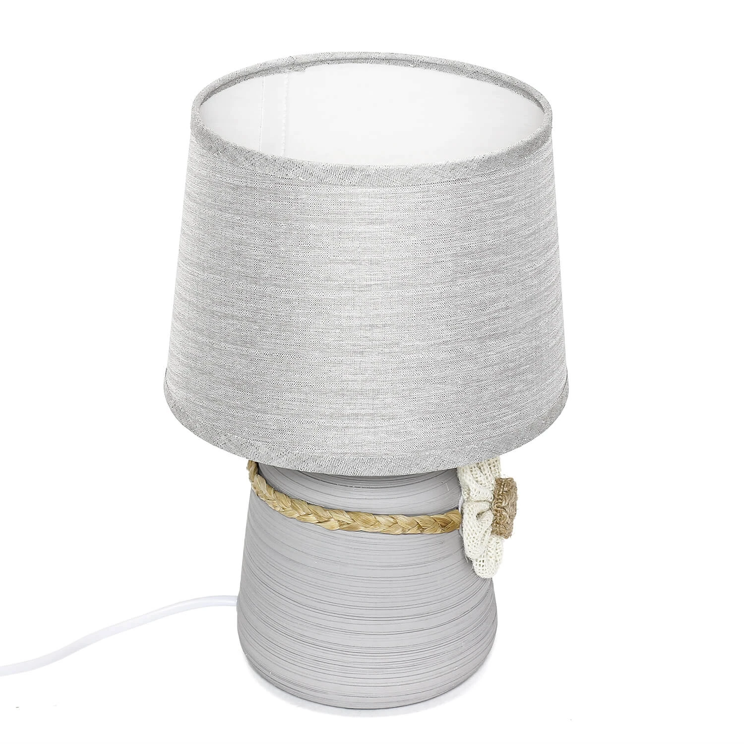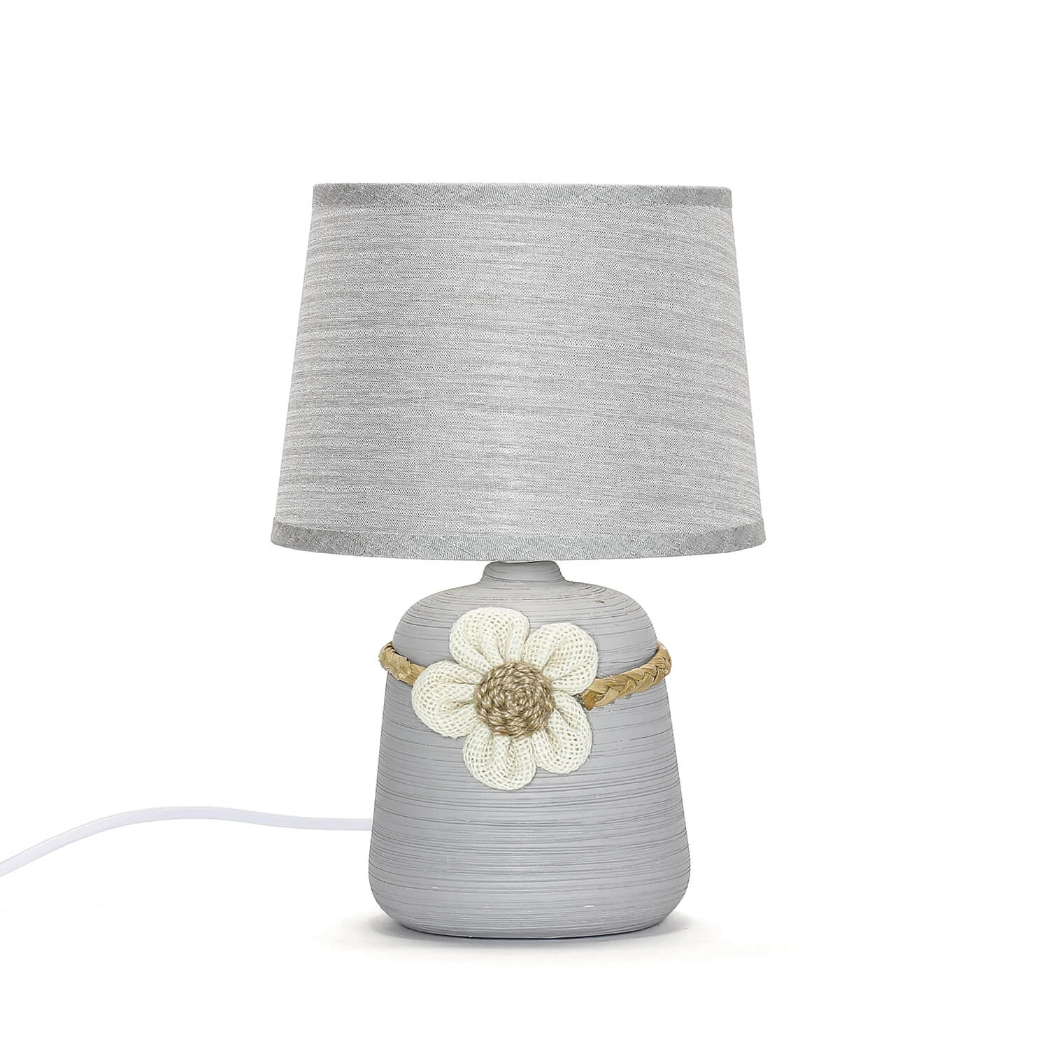 Fassung: 1x E14 bis 40W | Farbe: Grau, Weiß | Material: Keramik | Spannung: 230V | Spritzschutzklasse:IP20 | Elegante Tischleuchte in Grau mit Keramikfuß und Stoffschirm | wie eine Kette mit Blütenanhänger liegt das geflochtene Band um den Korpus, was die Tischlampe zu einem absoluten Deko-Highlight macht | dank ihrer Größe eignet sich die Leuchte ideal als Nachttischlampe und als Ambientebeleuchtung auf Sideboard, Kommode oder Beistelltisch | Tipp: Nutzen Sie energiesparende LED Leuchtmittel und passen Sie Helligkeit und Farbtemperatur ganz nach Ihren Wünschen an | Leuchtmittel sind nicht inklusive